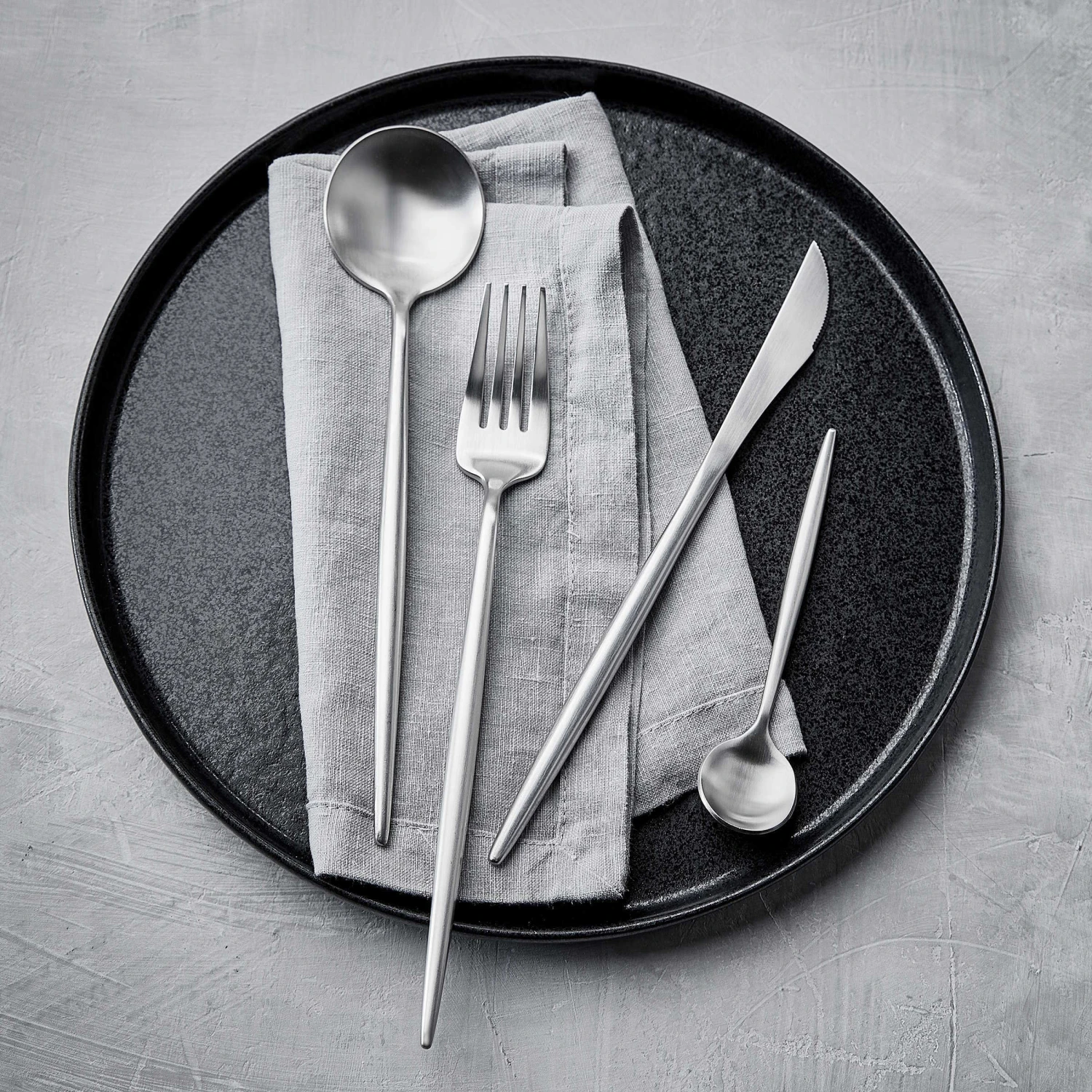Für einen Wow-Effekt auf dem gedeckten Tisch sorgt das Stiletto Besteck aus Edelstahl. Sein puristisches Design mit spitz zulaufenden Griffen passt in seiner Klarheit perfekt zum nordischen Stil. Doch das edle Besteck sieht nicht nur gut aus: Beim Essen liegen Messer, Gabel und Löffel dank leicht runder Form gut und sicher in der Hand. 4-teiliges Set, weitere Varianten erhältlich.