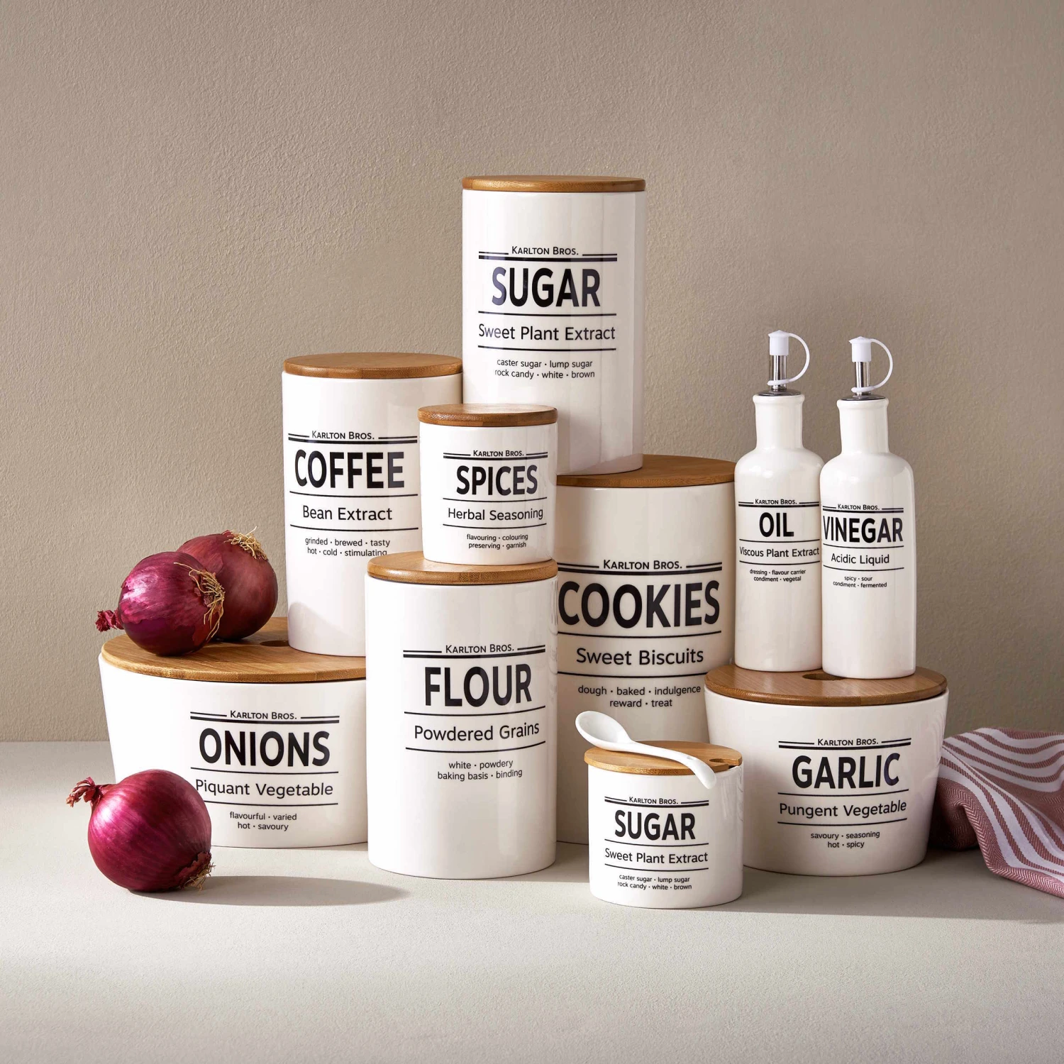 Die Karlton Bros. Vorratsdose Sugar im skandinavischen Landhausstil sieht nicht nur schön aus, sondern ermöglicht auch eine ideale Lagerung Ihres Zuckers. Der große Vorratsbehälter bietet mit einer Füllmenge von 1,1 Litern ausreichend Platz für Ihren Haushaltszucker. Zudem ist die Zuckerdose mit Bambusdeckel und Silikondichtung bestens geeignet um Ihren Zucker vor Feuchtigkeit zu schützen, sodass er möglichst lange seine Qualität beibehält ohne zu verklumpen. Ob zum Süßen oder Backen, der runde Zuckerbehälter ist immer griffbereit und macht auch auf dem Regal oder im Vorratsschrank eine gute Figur. Um das Bild perfekt zu machen, gibt es noch weitere Vorratsbehälter im skandinavischen Design aus der Karlton Bros. Serie für Ihre Küche.